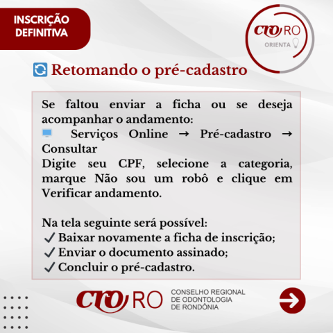Todo o procedimento é realizado pelos Serviços Online do CRO-RO, de forma simples, rápida e segura, sem necessidade de deslocamento até a sede.