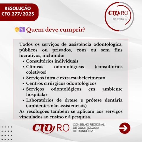 As resoluções possuem aplicação obrigatória e devem ser observadas por todos os serviços de assistência odontológica, públicos ou privados.
