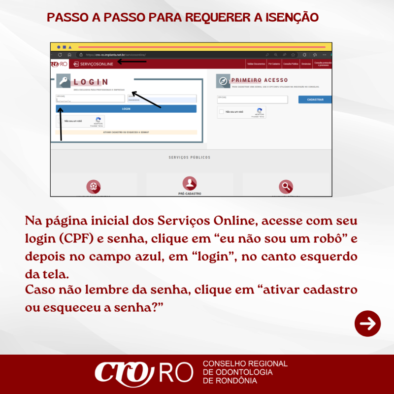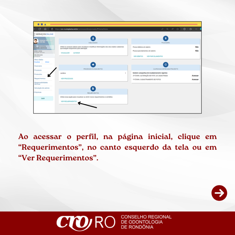 O pedido deve ser realizado exclusivamente pelos Serviços Online do CRO-RO: