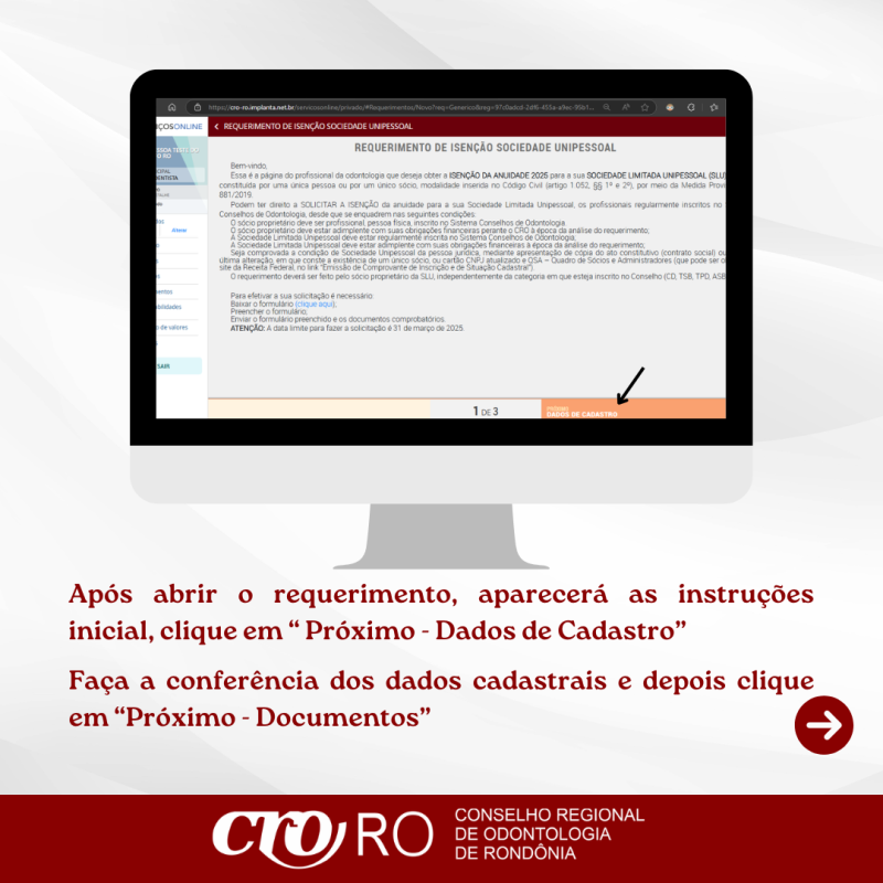 - Estar em dia com suas obrigações financeiras perante o CRO-RO.